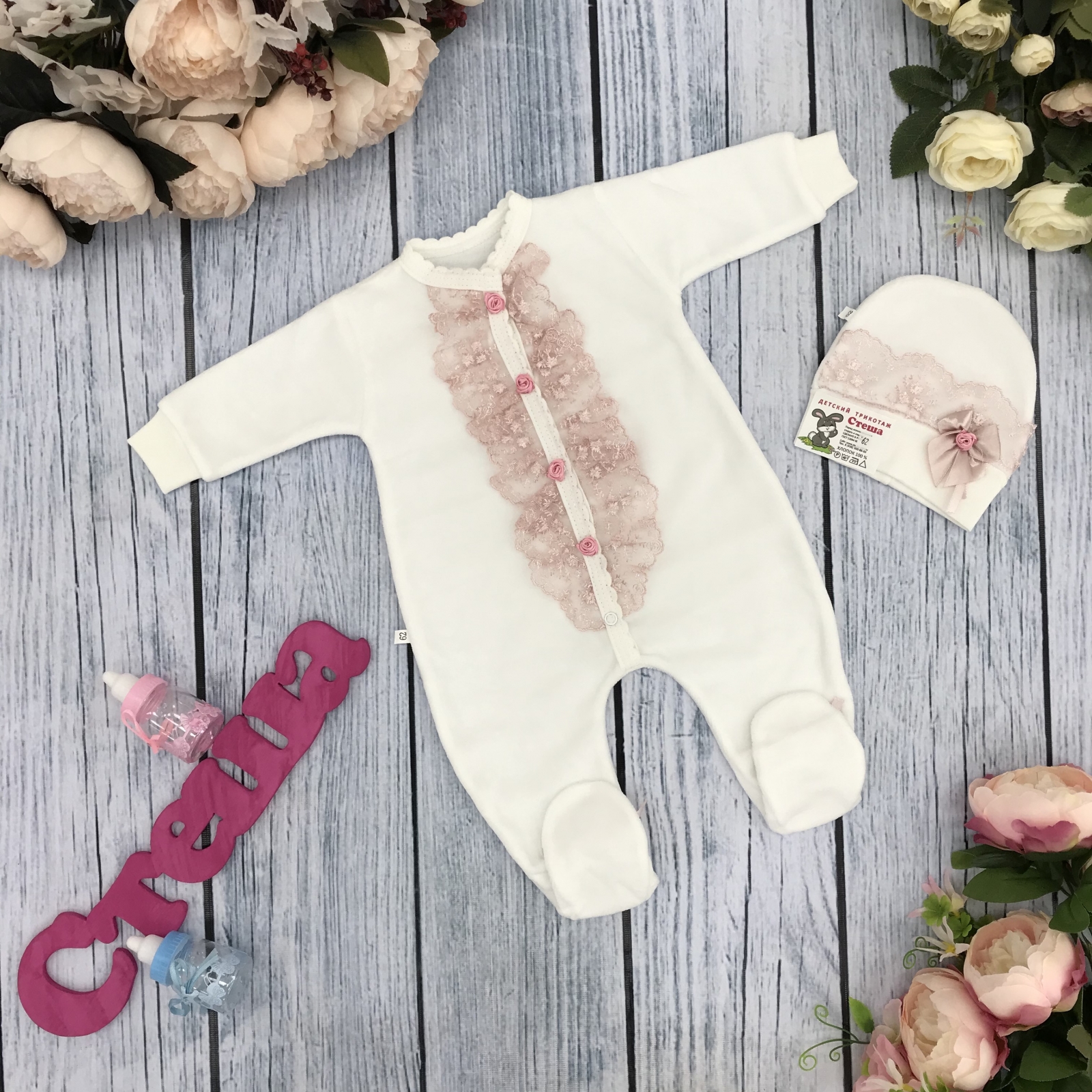 Теги: Купить оптом хлопковые комбинезоны от производителя. 260-П. Комбинезон с шапкой, хлопок 80% велюр 20% ПЭ пудра цена,отзывы официальный сайт "Стеша Воронеж"